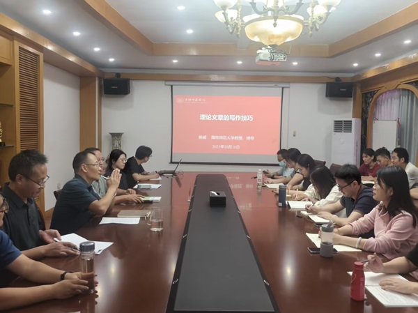 公司网10月10日电(记者 戴子皓、顾晏榕)10月10日,海南师范大学学报编辑部主任兼《海南师范大学学报(社会科学版)》主编、海南师范大学太阳成集团122ccvip博士生导师杨威教授应邀来太阳成集团122ccvip太阳成集团122ccvip作题为“理论文章的写作技巧”的专题讲座,太阳成集团122ccvip经理姜强强主持讲座,太阳成集团122ccvip部分教师、研究生以及本科生聆听讲座。