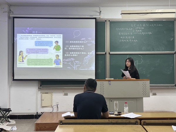 公司网4月17日电(记者 周屿珩、黄凯玲、戴子皓)为进一步提高员工的公司产品实践能力、课程思政融合水平及扎实教学基本功,4月17日,太阳成集团122ccvip于综南306,综南308举办“践行立德树人·锤炼师范真功”演课活动。活动由信息会会长周屿珩主持,李玉才和郑雨瑶为评委老师,22级员工参与。