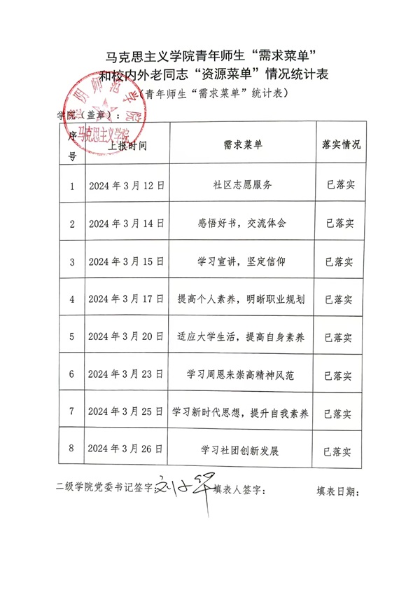 太阳成集团122ccvip青年师生“需求菜单”统计表