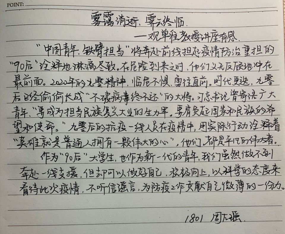 3月15日,习近平回信勉励北京大学援鄂医疗队全体“90后”党员,引发全国青年热烈反响。单淮教授从此说起。他说,武汉疫情是自1855年至今最大的一场疫情。而此次全国一盘棋式的援鄂行动充分展现了我国在灾难面前强有力的动员能力和制度优势。单教授说,90后在这次抗疫救援中起到的巨大作用,“90后是国之栋梁、未来希望,他们身上所具有的家国情怀,担当意识,拼搏与奉献的精神是击垮西方谬论的最好注解。”为了抗击疫情,党员发挥了带头作用,充分证明了只有在中国共产党的领导下,中国才能抵御一切突发灾难。针对职工归国问题,单教授认为,无论身在何地,中国政府都会尽力保护所有中国籍的中国公民。因此,我们应该理解那些职工父母的心情,对海外职工要有大度、理性的认识,同时也要相信祖国有能力保护好异乡的每一位中国公民。