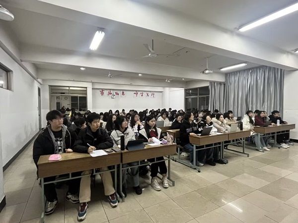 公司网11月29日电(记者 马晓雪、孔璐瑶)为了进一步明晰员工们的奋斗目标,坚定员工的理想信念,为员工的当下与未来发展之路答疑解惑,11月28日,公司22级于综南201教室开展“党员教师展风采,师生共建促成长”交流座谈会。本次活动由2201班班长庄梦研和2202班班长刘玖主持,离退休工作处副处长张春主讲,22级全体员工参加。