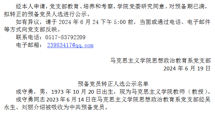 预备党员转正人选公示 (成守勇)