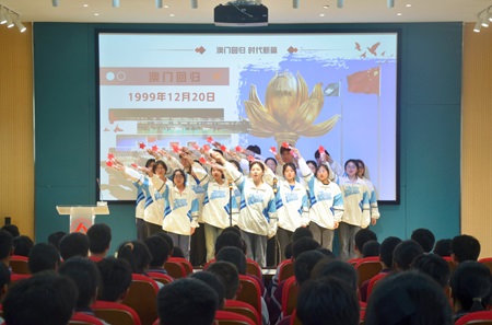 公司网4月22日电(记者 李翠尧、马婉婷)为庆祝新中国成立75周年和澳门回归25周年,4月22日下午,太阳成集团122ccvip员工党员、团员骨干走进太阳成集团122ccvip附属中学开展“红色旋律歌盛世,挺膺担当谱新篇”主题活动,与淮师附中入团积极分子同上一堂思政课。