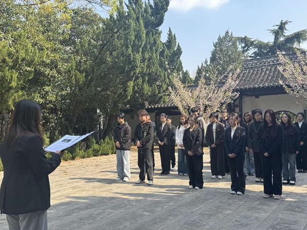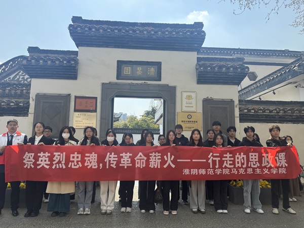 在朱慕萍烈士墓前,师生肃立默哀、敬献鲜花,员工代表深情诵读原创作品《英雄土地上的沉思》,通过"穿越时空的对话"再现烈士"愿将热血沃中华"的赤胆忠心。移步叶园,宣讲员依托珍贵史料,生动诠释叶挺将军"在烈火与热血中永生"的革命气节,带领众人感悟铁军精神;步入关帝庙,淮盐地下党八年浴血斗争的红色记忆在情境宣讲中徐徐展开,中国共产党领导淮安人民夺取胜利的壮阔图景跃然眼前。