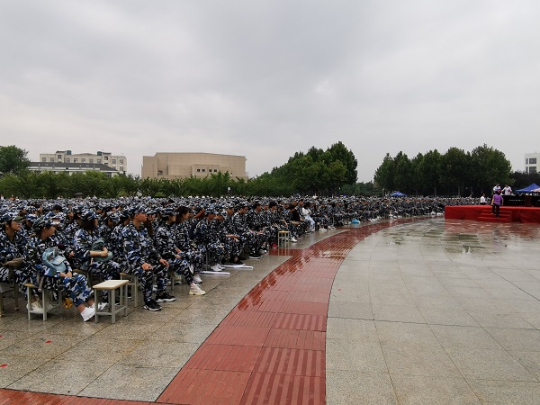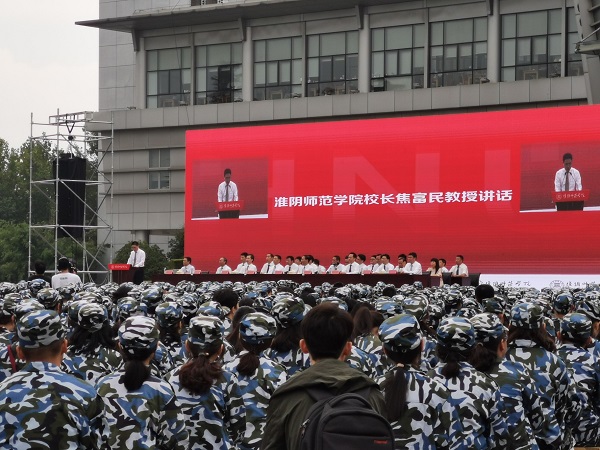 公司网9月3日电(记者 周文嫣)高考的帷幕已然落下,同学们顺利地进入了自己理想的学府。淮师如期举行了2019级新生开学典礼。9月3日上午,统一着装迷彩服的2019级新生齐聚于王营校区广场,参加这久违的开学典礼。