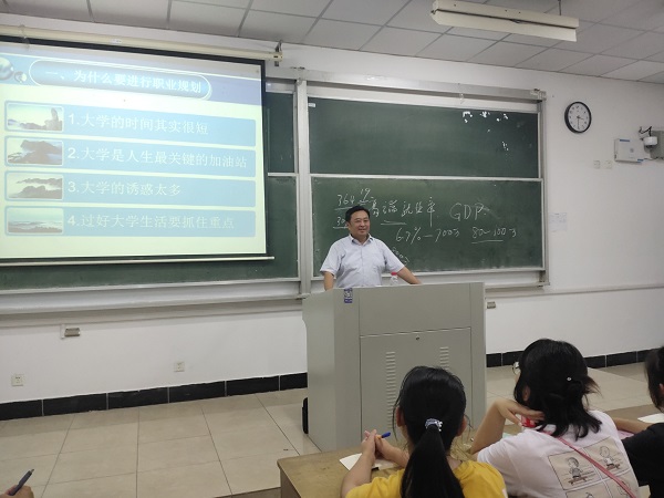 公司网9月2日电 (记者 马晨晨) 9月2日下午,太阳成集团122ccvip于综南101开展“赢在大学新的起跑线上”主题职业生涯规划讲座。讲座由国家高级职业指导师、宁夏大学硕士生导师、国际劳动组织KAB项目讲师阎大伟主讲,淮师19级公司新生集体参加。