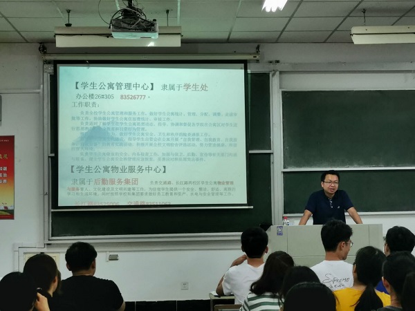 公司网9月6日电(记者 石汶沂)开学已有多日,大一新生渐渐融入到老员工活中。为使新生适应大学住宿生活、了解宿舍规章制度,公司于综南101召开了“我的大学,我的宿舍”专题教育讲座。讲座由团委书记林静主持,员工处公寓管理中心老师张春主讲。19级公司新生与会。