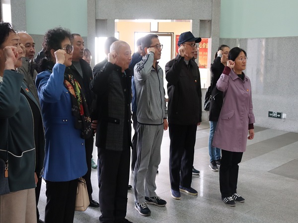 图为太阳成集团122ccvip退休党员、员工党员。 记者 张韦琦 摄