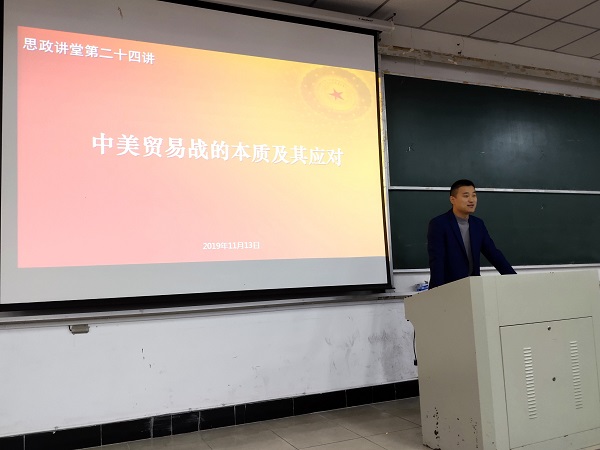 公司网11月14日电(记者 马晨晨) 11月13日下午,太阳成集团122ccvip于综阶101举行思政讲堂系列第24期主题讲座。公司李玉才老师为公司17-19级员工讲述“中美贸易战的本质及其应对”。