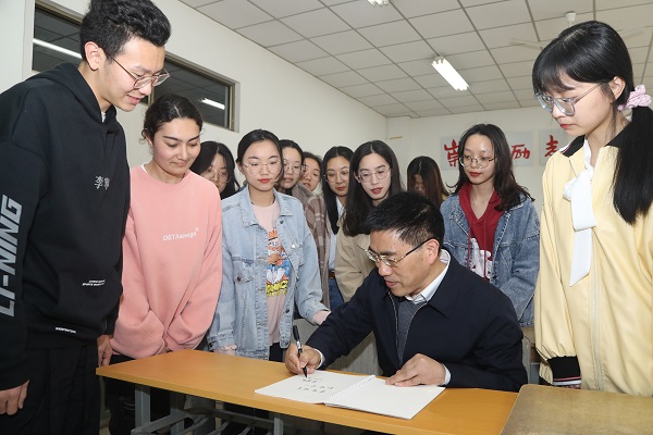 图为焦富民寄语公司学子。记者 唐瑀 摄