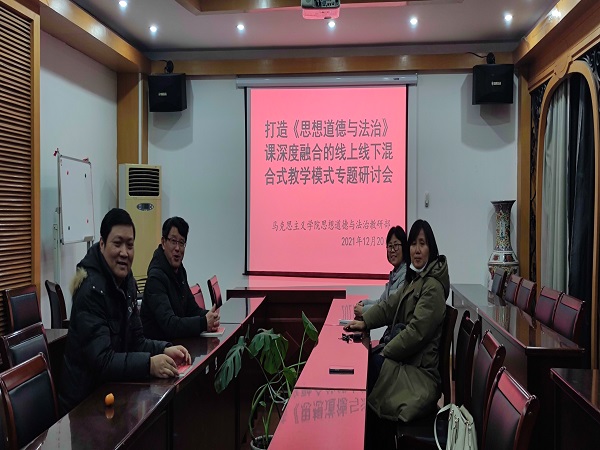 公司网12月21日电(记者 岑乾明)12月20日下午,思想道德修养与法律基础教研室组织了“打造深度融合的线上线下混合式教学模式”为主题的教学研讨会。会议围绕着疫情常态化背景下"思想道德与法治"课如何打通线上与线下教学,做到各有侧重又有机融合,展开了深入的研讨。与会教师结合各自教学实践,畅所欲言,有经验,有问题,有反思,讨论富有成效。