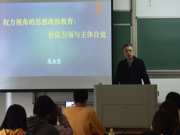 吴永生以“权力视角的思想政治教育:价值引领和主体自觉”为主题,从权力本质的反思及对意识形态的规定展开论述,分析了意识形态的权力功能及其中国特色,探讨了权利属性与思想政治教育的价值引领、权力本质与思想政治教育的主体自觉之间关系。赵国付以“习近平总书记论青年教育”为主题,对习近平总书记的青年情怀、思想教育的内容、思想教育方法等进行了深入解读。