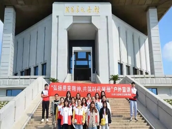 二践行恩来伟志之曲。微讲团策划成立“三下乡”实践队伍,开展 “聚焦两会传播党的声音,学思践悟助力全面小康”暑期社会实践活动。返家乡、进社区、入农村,以“一个宣讲一个走访”为主线,在实践中守初心、长才干。2020年暑期三下乡社会实践活动获《学习强国》的报道。