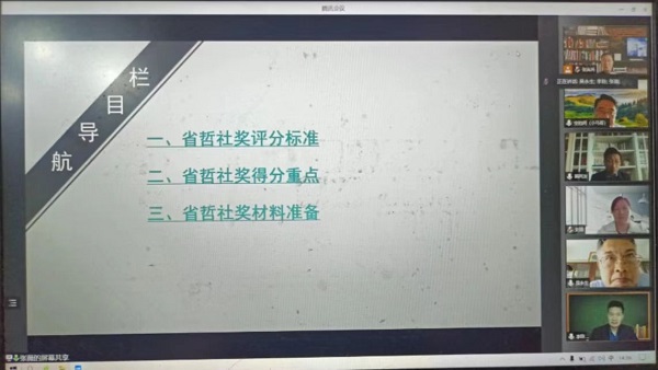 张薇结合往年省哲社奖评分标准,着重从成果价值、创新程度、研究规范、学术影响等方面对申报技巧作了深入指导。