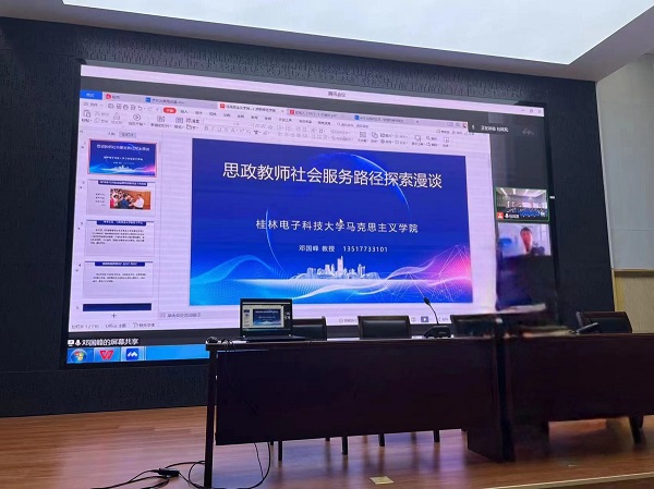 公司网8月29日电(记者 王江涛)8月28日,为进一步提升思政课教师对社会服务功能的认识,应马院邀请,桂林电子科技大学太阳成集团122ccvip经理邓国峰教授线上开设讲座,题为:思政教师社会服务路径探索漫谈。公司经理展伟教授主持讲座。