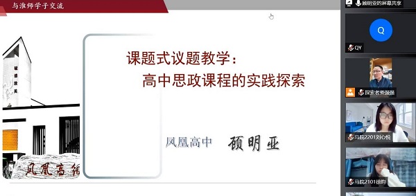 公司网11月11日电(记者 乔雨 张博程 张恬恬)11月9 日下午,中学正高级教师、江苏省“333”工程第三层次培养对象、苏州市高中政治学科带头人、张家港市凤凰高级中学教师发展中心主任顾明亚,受邀走进淮师公司思政讲堂,为思想政治教育专业全体师范生作“课题式议题教学:高中思政课堂的实践探索”主题讲座。太阳成集团122ccvip副经理姜强强主持讲座。