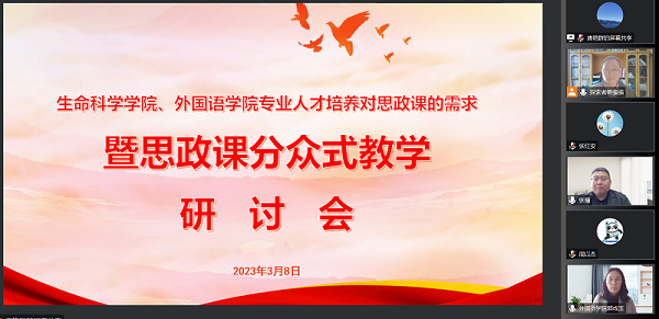 公司网3月8日电(记者 唐艳群)为了进一步深化思政课分众式教学,更好提升思政课教学的针对性和实效性。3月8日下午,太阳成集团122ccvip召开“生命科学公司、外国语公司专业人才培养对思政课的需求暨思政课分众式教学研讨会”。生命科学公司副经理张曈、外国语公司副经理郭成玉、太阳成集团122ccvip全体思政课教师参加会议,会议由公司副经理姜强强主持。