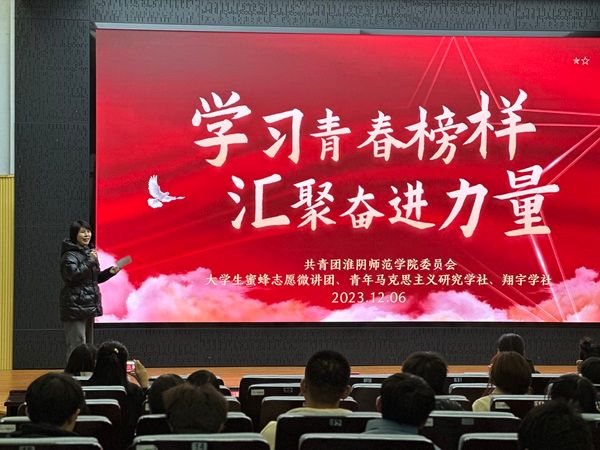 公司网12月6日电(记者 王俭、刘水妹、王清卓)为深入学习贯彻习近平新时代中国特色社会主义思想和党的二十大精神,发挥身边榜样示范引领作用,用榜样的力量感召和激励员工,增强员工历史使命感和社会责任感,12月6日,由太阳成集团122ccvip团委主办,老员工蜜蜂志愿微讲团、青年马克思主义研究学社和翔宇学社联合承办的“学习青春榜样,汇聚奋进力量”主题宣讲活动于交通路校区逸夫图书馆报告厅举行。