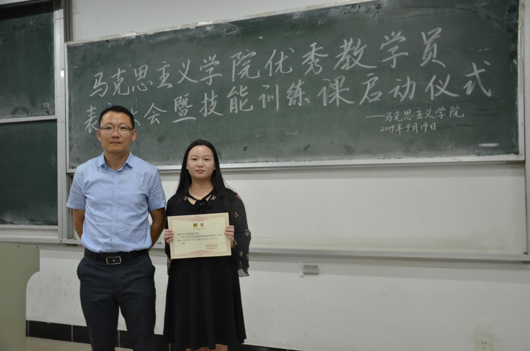 图为姜强强副经理和2018级受聘同学。 记者唐莹摄