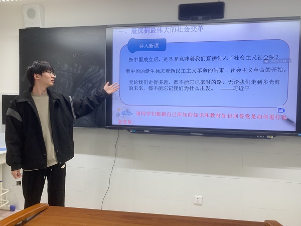 “学而不思则罔,思而不学则殆。”在备课的同时,我也听了很多政治老师的课,认识到自己的不足并且加以改进,逐步使自己的更加符合一个人民教师的要求,不辜负淮师的培养。