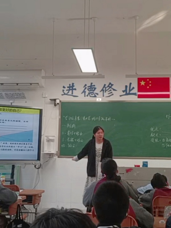 来对生活比个“耶”。初中的孩子们可爱活泼,富有童真。每每下课,或是同学间的趣事分享,或是师生之间探讨课堂上留有的一些小疑问,师生当如此,温柔且坚定。犹忆不久前,有同学因为疫情被滞留在家,我“被迫”增加了另外一个身份——“学习主播”。有次刚下课,问问题的同学围上来将我留在讲台上,开网课的手机被后排两位男生拿到手后,第一反应不是关掉镜头也不是躲避镜头,而是对着镜头比耶自拍,事后看到回放的我被他们的童真而可爱到。