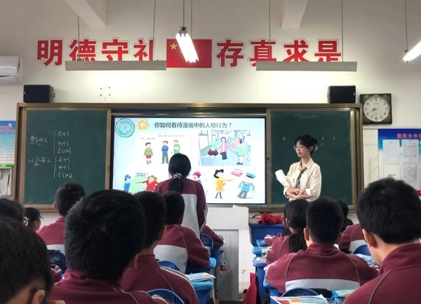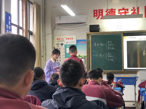 在上完“尊重他人”这节课后,我观摩了正式教师张萍老师“诚信待人”这节公开课,与张老师比较,我更加清楚地认识到了自己目前的不足。政治组的教研让我学到了许多东西,也吸取了许多经验。比如在课程容量安排上,我把课堂内容安排得过多,导致定义的生成过程不够细致、清晰,而张老师的内容安排得充实、适量,尊重员工的接受能力。政治组内的所有老师都非常优秀,我很荣幸能够在政治组内向诸位前辈们学习如何开展政治教学、如何当一位优秀的人民教师的经验。