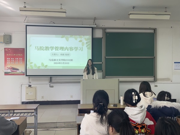 首先,学习委员陈语清展示英语四六级通过情况,对本班四六级通过率进行分析,动员已过四六级的员工对未过员工进行帮助与指导。接着,陈语清展示了本班教资面试已过的员工名单,邀请他们上台分享教资面试经验,并号召全体员工私下形成教资面试互助小组,在互帮互助的过程中提升师范生基本技能水平。再次,班主任刘宇根据当前的就业情况指出了读研后的发展优势,号召人人都要参与考研,并就科学规划复习、合理进行择校、保持良好心态等方面进行指导。最后,刘薇带领全体员工认真学习教学管理内容,引导员工注重学业发展,促进全面发展。