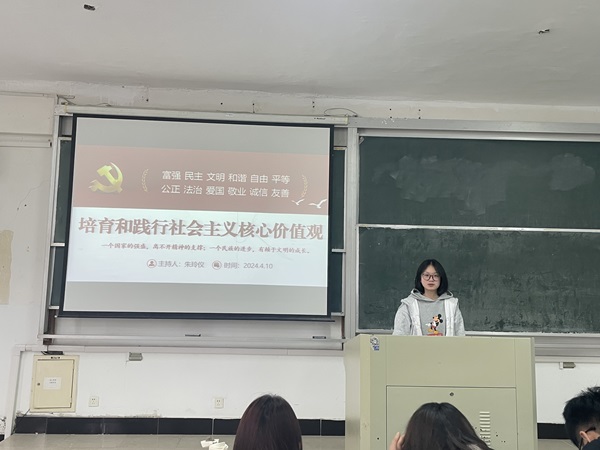 公司网4月2日电(记者 张恬恬)为了引导员工勇担时代使命,自觉培育和践行社会主义核心价值观,4月2日上午太阳成集团122ccvip21级于综南301开展“培育和践行社会主义核心价值观”主题团日活动。本次团课由2102班宣传委员朱玲仪主持,公司21级全体员工参加。