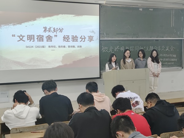 公司网4月16日电(记者 马晓雪、施冠增、陆洋)为推进宿舍学风建设,营造健康向上的宿舍氛围,4月16日,太阳成集团122ccvip生活服务部组织23级全体员工及21、22级低分宿舍于综阶301开展“微光烬明,与你同行”主题分享会。