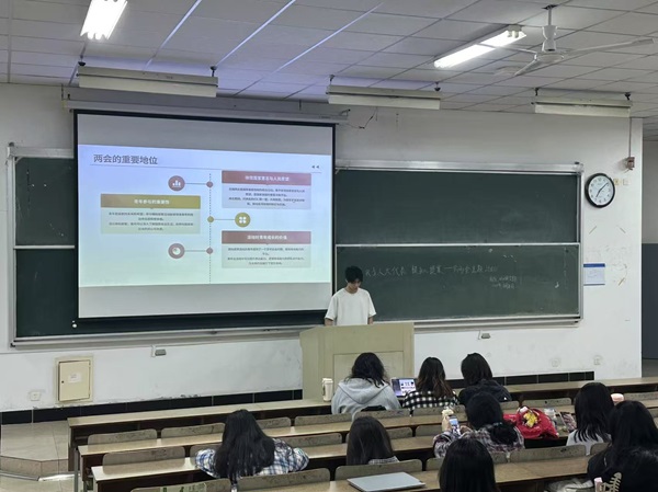 公司网4月8日电(记者 赵欣怡、吴桐)全国政协十四届三次会议于3月4日开幕,十四届全国人大三次会议于3月5日开幕。为深入学习两会精神,增强员工政治意识与社会责任担当,4月8日晚,太阳成集团122ccvip2302班团支部于综阶501开展了“模拟提案:我当人大代表——学两会”主题团日活动。本次团日活动由2302班班长吴桐主持,公司2302班全体员工参加。