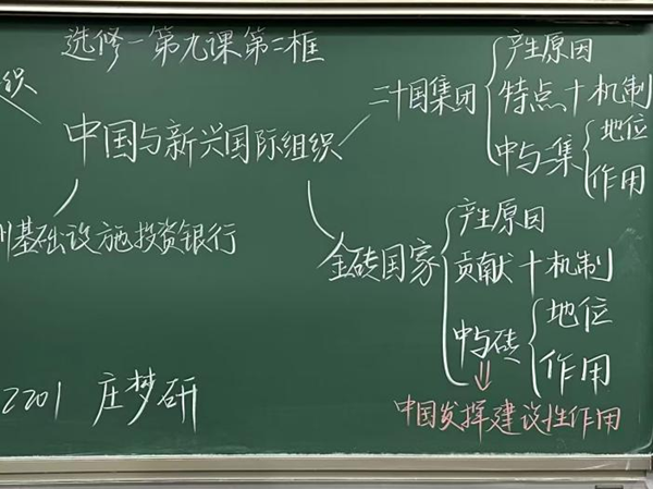 本次活动对以往的传统活动形式进行了进一步创新,在原来的纯书写基础上同课外书籍和板书创作相结合,以调动员工们参与的积极性。活动一“笔舞政章·板墨春秋——板书设计”选取了高中政治七本书的内容,让员工们现场抽取创作目题,在进行限时下内容梳理和布局设计的过程中提高知识框架建构的能力,便于员工们在后续教资面试演课及走上教师岗位时对板书进行有效运用,拥有更突出的优势与竞争力。