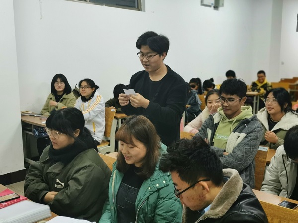 第一项活动为“爱心传递”,员工将一张写满祝福语的爱心小卡片,交给一个人且由他传递给一个他想感谢的人并说出原因。旨在引导大家从感谢他人中获得快乐。第二项活动为“命运之牌”,邀请同学交流全新的“自己”,使同学们学会感激现在的自己,知足常乐。第三项活动是“谁是卧底”,通过游戏促进同学们之间的友谊和对彼此的了解。
