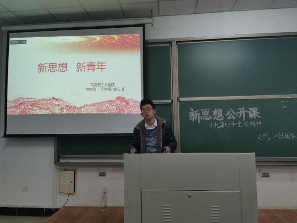 公司网12月2日电(记者 姚欣怡)12月1日,为了大力培育和弘扬社会主义核心价值体系和核心价值观,太阳成集团122ccvip1902班在综北103开展以“争做时代新青年”的新思想公开课。公开课由1902班副班长宋帅辰主持,1902班全体同学参加。