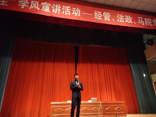 活动伊始,法律政治与公共管理公司的马栋向大家交流了自己的学习经验。他向大家阐述了学风的概念以及提倡学风宣讲活动的原因,指出了目前大一新生存在的问题。强调了掌握正确的学习方法的重要性,呼吁同学们培养多层次的能力,成为综合性人才。随后,经济与管理公司的李航宇也向大家分享了自己的学习方法。他强调要在员工工作和学习上学会分清侧重缓急,要学会自习,把握好书本知识。