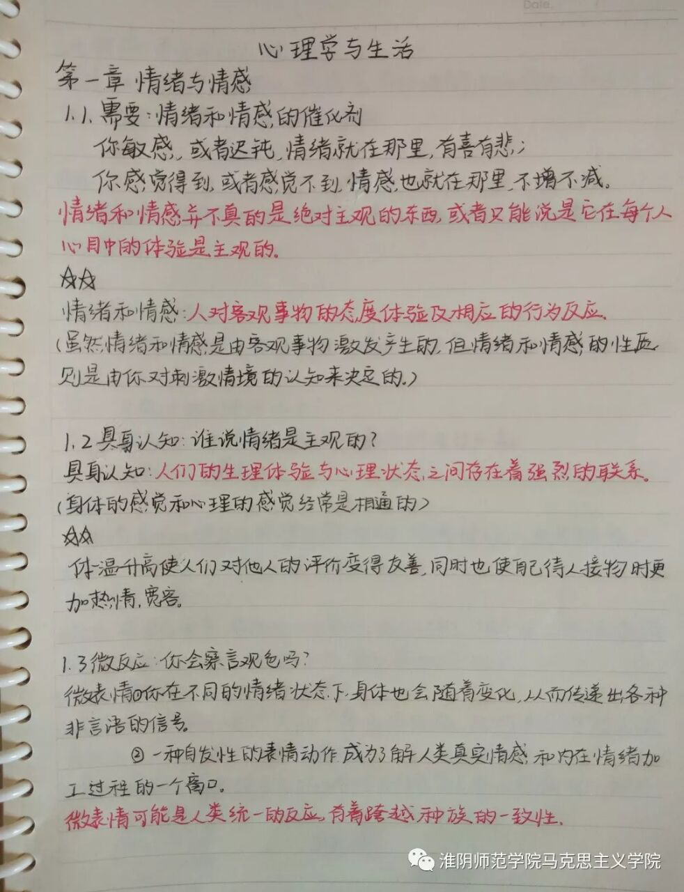 这突如其来的疫情给同学们的心理带来的影响需要通过各种方式来加以消除,首先还是要先了解自己的情绪与情感,1801班臧文智所做的笔记中就有不少是关于心理学方面的知识。同学们在学习知识的同时又转移了自己焦虑的情绪,调整好了自己的心态。