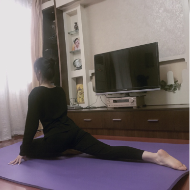 Ps:一组30秒,做完换右边跨坐右侧臀部拉伸。