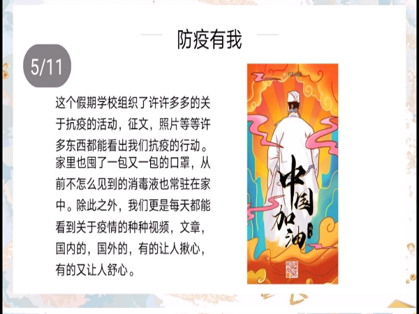 公开课上,许久未见面的同学都积极参与发言,分享自己在家的生活,加深同学们对春节这个传统节日的认识,感受各地不一样的春节,培养同学们对假期时间安排的能力。防疫不防爱,静候春来时。