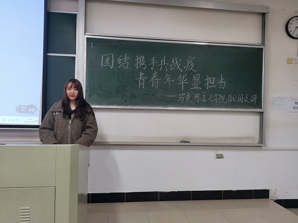 公司网11月13日电(记者 张誉龄)为了激励和引导广大青年教师进一步坚定制度自信,在党和人民需要的地方贡献青春力量,让青春在战“疫”一线绽放、战“疫”斗争彰显中国自信。2020年11月13日1802团支部展开以“团结携手共战疫,青春年华显担当”为主题的团日活动。
