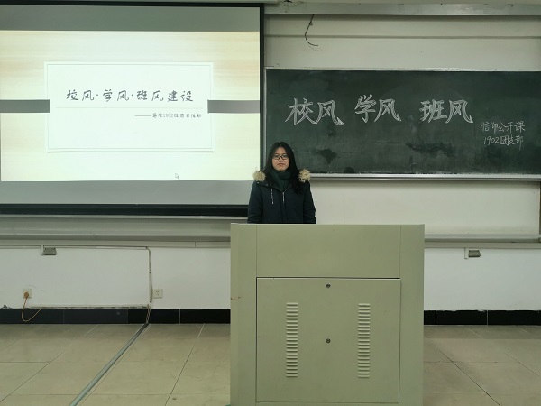 活动伊始,顾陈葭利用幻灯片向班级同学讲解建设良好校风、班风、学风的方法途径、重要性及意义,其次,她结合公司、班级自身现状,列举如今阻碍三风建设的屏障,督促班级员工重视现存问题。最后,主持人鼓励全班要为建设好良好的班风而通力合作、精诚团结,争取自我修正、自我完善,将班级建设成为校示范性集体。