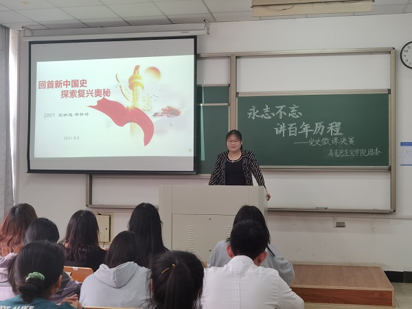 比赛伊始,宋帅辰简单讲明比赛规则,希望评委们秉承公平公正公开的原则为选手打分。整个比赛过程,热情高涨、激情四射。武伽旭组讲的新中国史围绕“为什么没有共产党就没有新中国”这一核心问题展开,从中华民族的精神谱系讲到新中国时期的重大成就,最后再到中华民族伟大复兴背后的秘密。节奏紧凑,内容生动。俞静蕾组所讲的改革开放史,由一首《我爱你中国》贯穿,从了解改革开放的巨大变化到分析改革开放的成功原因,逻辑清晰,内容详实。周璐组讲的社会主义发展史从三方面入手,经济建设、政治建设、文化建设,由脱贫攻坚讲到民法典颁布,再讲到习近平新时代中国特色社会主义思想,鼓励大家不忘初心,砥砺前行。