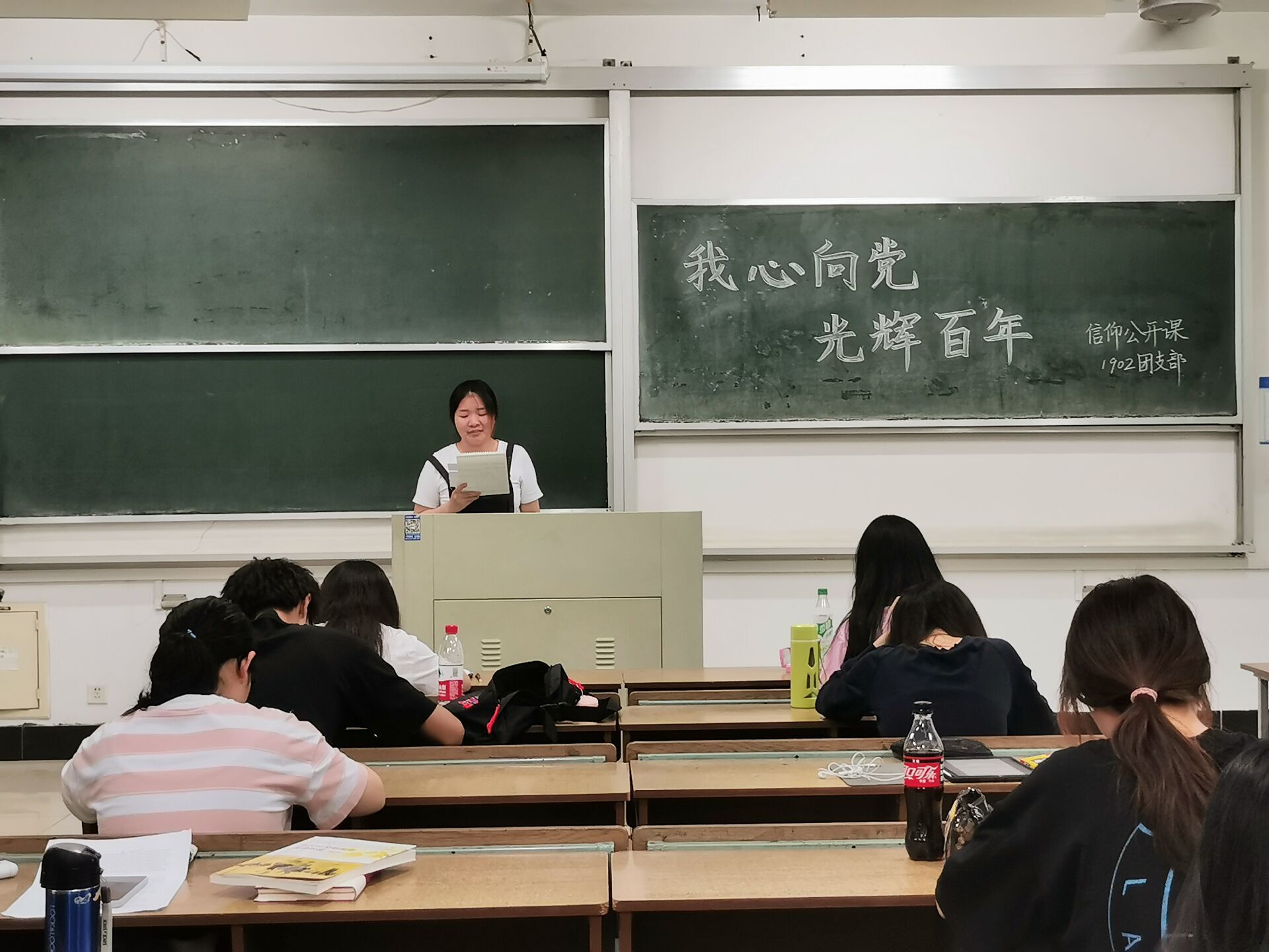 此次活动形式为各个班级成员接力书写对党的一句话,活动伊始,谭译开展写本交接仪式,她将签字本递给员工杨莹莹,并指导各位同学书写格式与要求。随后,员工一一写下对中国共产党的肺腑之言。接着,主持人邀请周文嫣、王珺彦、徐珠萍、王银四位员工给全班员工阅读自己献给党的话,赢得了员工的热烈掌声。最后,主持人作活动总结,表明班级员工应向党学习,严格要求自己,为建设社会主义努力学习、奉献自我。
