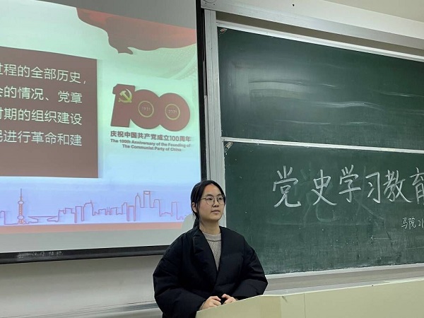 员工们首先观看了一段视频,领悟革命先辈冲锋陷阵,浴血奋战的赤子之心。接着,学习习近平总书记七一讲话精神和伟大建党精神,概括起来短短三十二个字“坚持真理、坚守理想,践行初心、担当使命,不怕牺牲、英勇斗争,对党忠诚、不负人民”,激发起员工们的爱国情怀,使员工们领悟到一代人有一代人的使命,一代人有一代人的担当!同学们畅所欲言,谈自身理想、谈未来目标、谈远大抱负!在团课的最后,在傅桐耶同学的带领下,开展党史知识问答活动,以ppt展现题目的方式让同学们进行抢答,同学们积极参与,经一步领悟党史精神内涵。