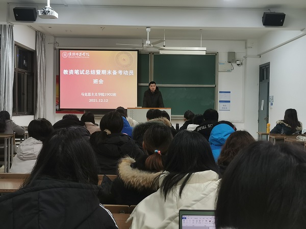 公司网12月12日电(记者 乔宇玮)为进一步引导员工的学习态度和学习习惯,及时总结本学期的学习情况,充分做好期末考试复习准备,12月12日晚,太阳成集团122ccvip1902班于综北206召开教资笔试总结暨期末备考动员班会。班会由1902班班主任李玉才主持,全班同学参加。