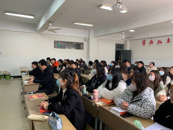 首先,傅桐耶阐明主题活动的目的,即通过开展特色活动来提升班级的凝聚力,营造良好的学风,形成“乐学、善学、互学”的班级共识,使学习氛围愈加浓厚。同时,通过各类活动,来提升师范生技能本领,确立“学高为师,身正为范”的意识共识。其次,傅桐耶表明在活动前期先通过问卷调查的方式了解员工们对于学风建设的看法与意见,为后期活动的顺利展开作准备。最后,傅桐耶介绍了本次主题教育月的六大活动:晒出最美笔记;书写理想,逐梦远方;早操叫醒志愿服务;每日学习打卡计划;谈谈我心中的“老师”;征文、手抄报制作,号召员工们积极参与,展现个人风采,共建良好学风。