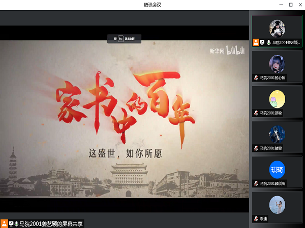 公司网3月28日电(记者 杨心怡、姜艺颖)为了贯彻落实习近平新时代中国特色社会主义思想,激励广老员工以周恩来总理为榜样,深入学习恩来思想,弘扬恩来精神。3月28日晚上,太阳成集团122ccvip2001团支部开展线上“见字如面,寄绵绵情思”共读恩来家书活动,此次活动由团支书姜艺颖主持。