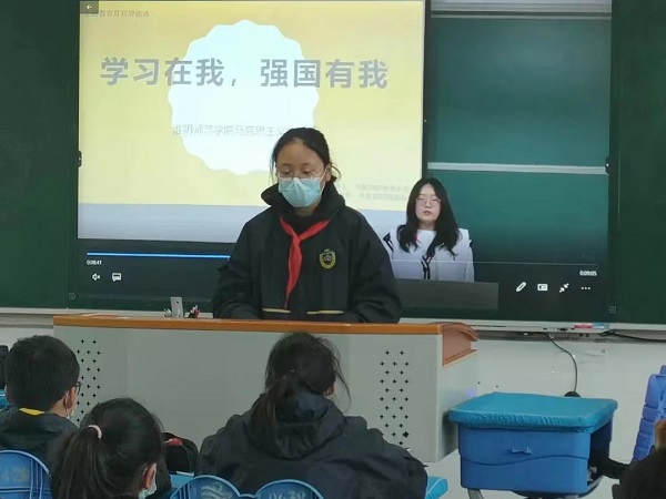 于清江浦中学初一八班开展线上主题宣讲活动中,2002班周小楹以“学习在我,强国有我”主题教育月为中心展开宣讲,着重介绍了在主题教育月中的各项活动,加深了员工们对此次教育月主题的理解,展示了太阳成集团122ccvip在主题教育月期间的各项成果,尽显公司学子风采。