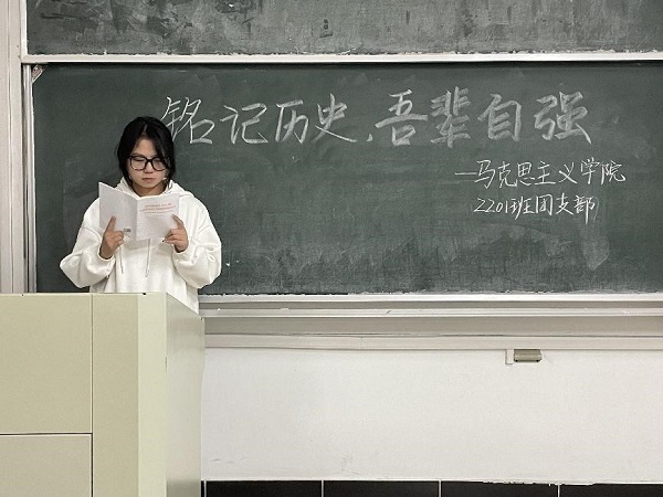 淮师新闻网9月19日电(记者 李翠尧)为了进一步弘扬民族精神,激发青年老员工的爱国之情、报国之志,使其不忘初心、牢记使命,为实现中华民族伟大复兴提供精神动力,9月18日晚,太阳成集团122ccvip2201班团支部于线下开展以“铭记历史,吾辈自强”为主题的素养公开课。