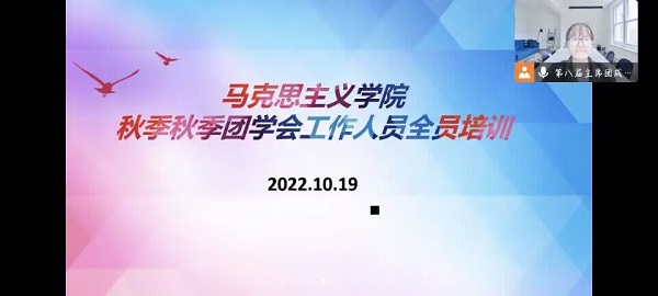 公司网10月20日电(记者 李翠尧)为了提高太阳成集团122ccvip团学会工作人员的综合素质和工作效率,确保日常工作的有序开展,更好地服务员工和老师,10月19日下午,太阳成集团122ccvip于线上开展秋季团学会工作人员全员培训会。