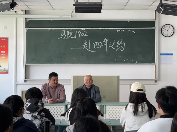 刘小华追忆四年前的开学谈话寄语——“奋斗是青春最亮丽的底色”,并将此作为一根红线串联整个四年之约,肯定以张保洋、谭译、宋帅辰为代表的48名班级成员的努力与奉献。目前,1902班共有7位员工考取研究生,22位员工考取教师编制,高质量就业率超60%,刘小华对此表示欣慰。四年后的今日,他再次以习近平总书记的号召嘱托全体毕业生“成为担当民族复兴大任的时代新人”。此外,刘小华给出两条建议。第一,他勉励青年要争做“开路先锋”、“事业闯将”,面对现实应脚踏实地、统筹规划。第二,他告诫青年要学会自省、改造自我,面对社会应强大内心、笑对人生。他强调,人生不如意十之八九,常想一二,应看到自身长处,并祝愿全体毕业生万事顺遂。