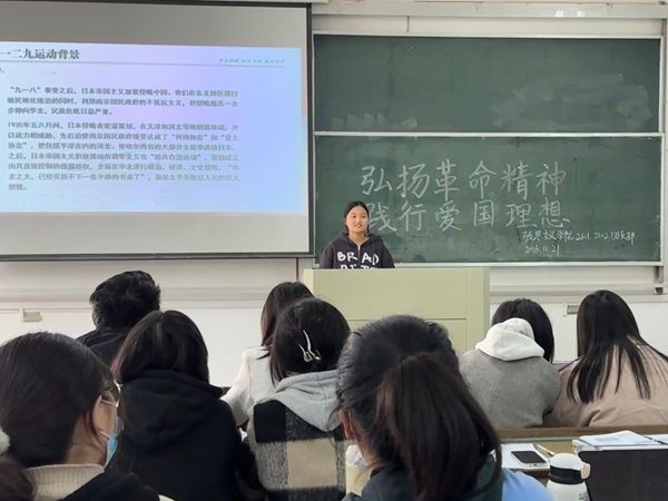 团课伊始,员工在团支书的带领下一同观看有关“一二·九”运动的视频,了解“一二·九”运动背景及过程,追忆历史,缅怀先烈,体会青年人强烈的家国情怀以及他们义无反顾、勇往直前的革命精神。接着,2102班班长刘薇发表观后感悟,表明要继承革命传统,弘扬民族精神,牢记历史责任,践行爱国理想,号召员工将“一二·九”运动的精神落实到日常生活中。最后,全体员工共同朗诵关于“一二·九”运动的爱国诗歌,声音激情昂扬,流露出对祖国的自豪感、使命感、责任感。